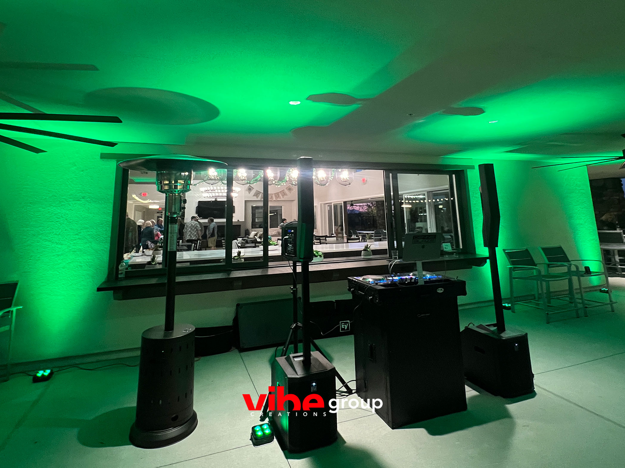 12 Uplights ($400) programmable to any color to illuminate and highlight the venue's perimeters.