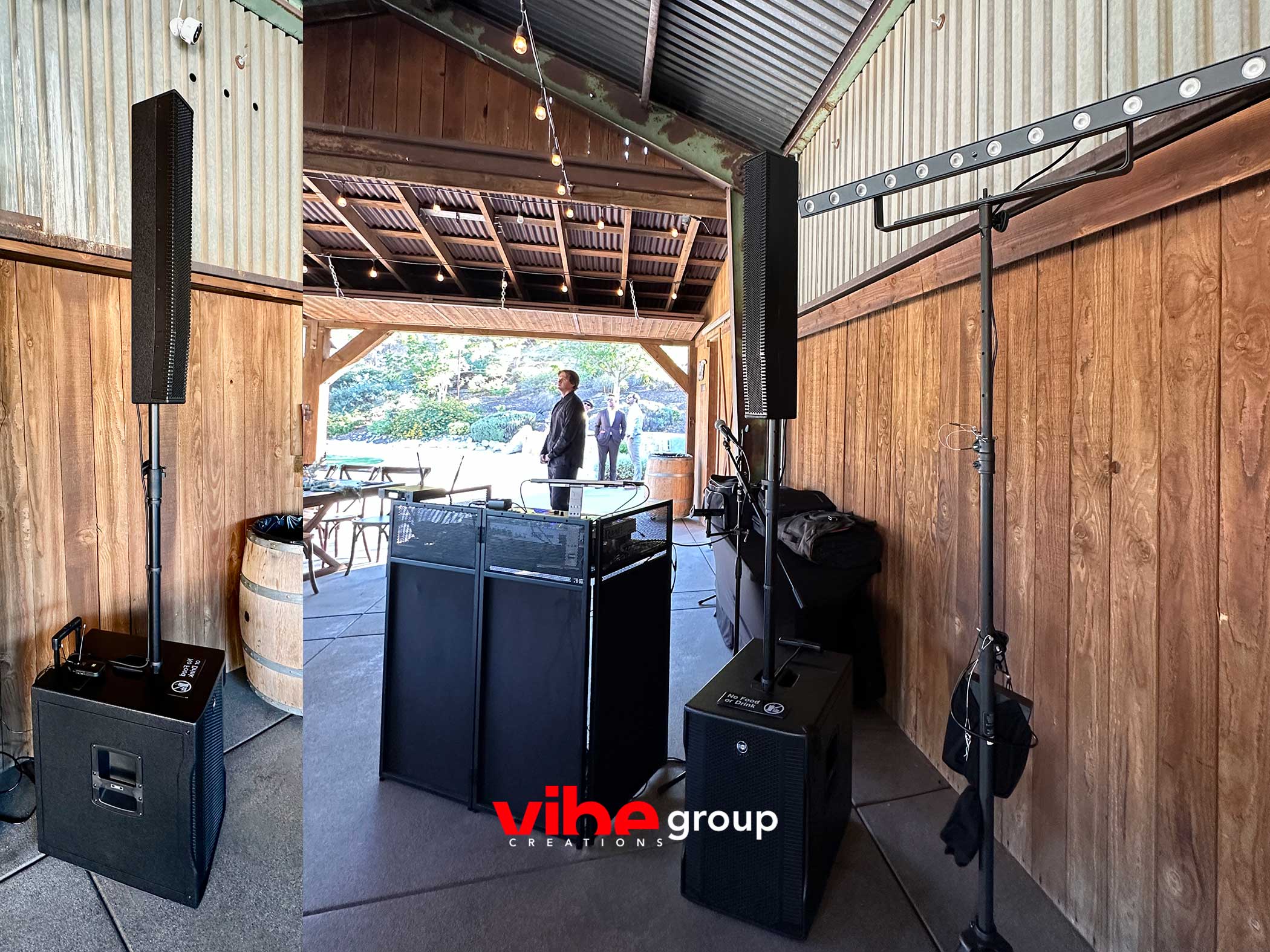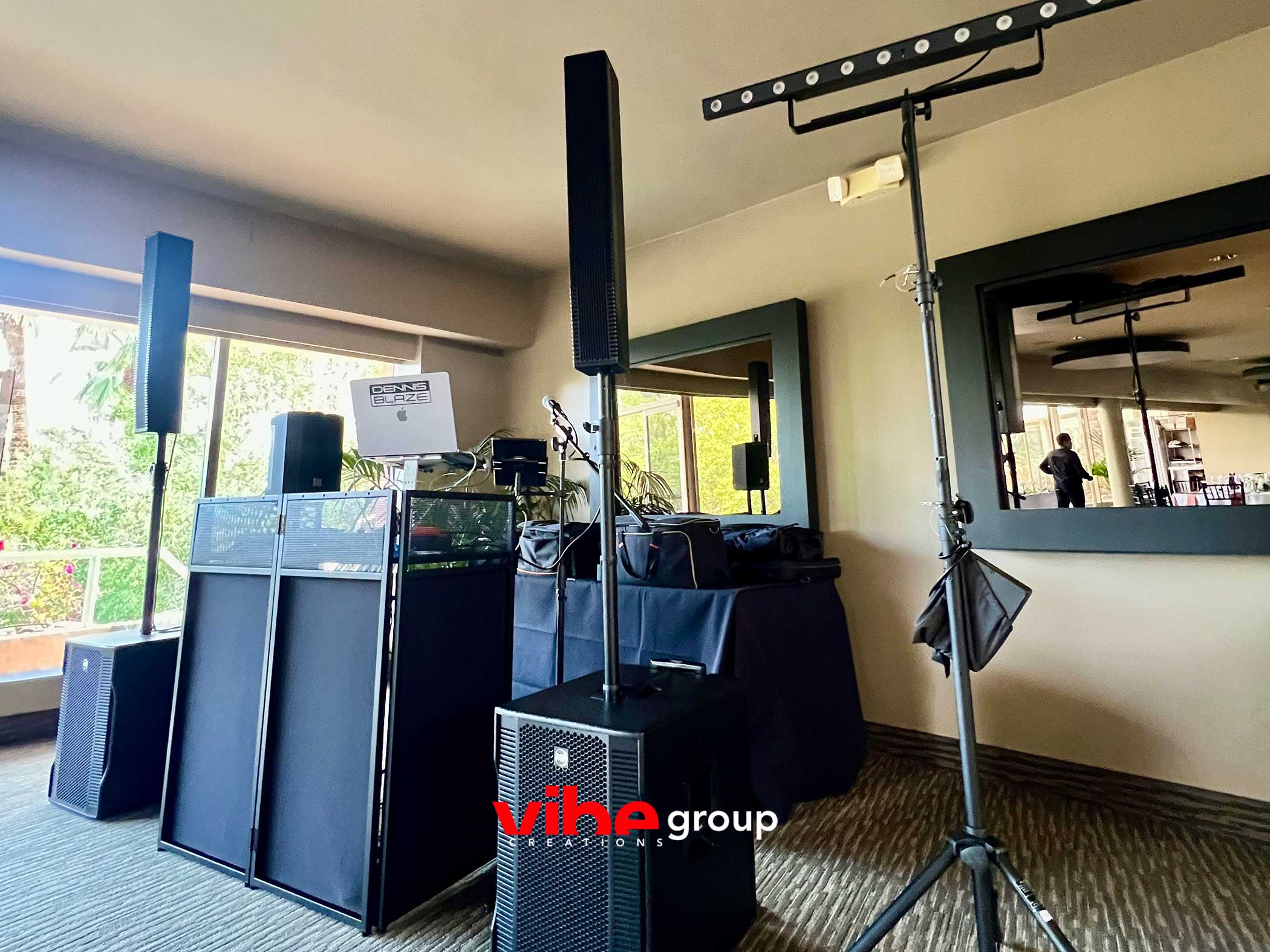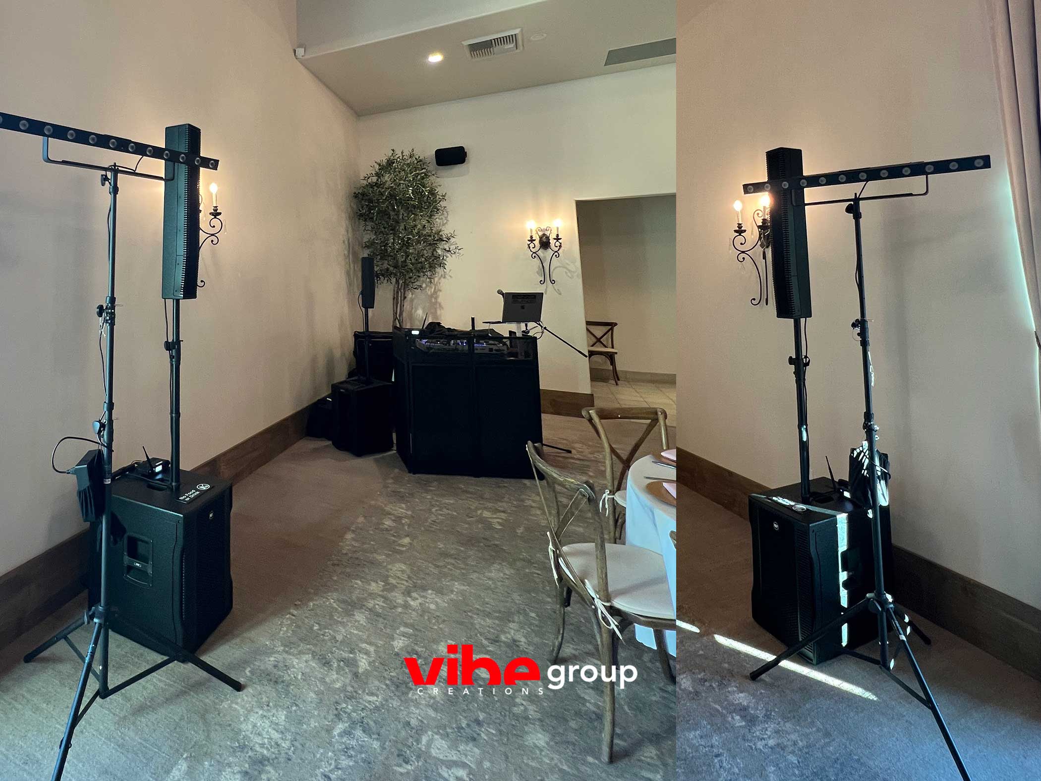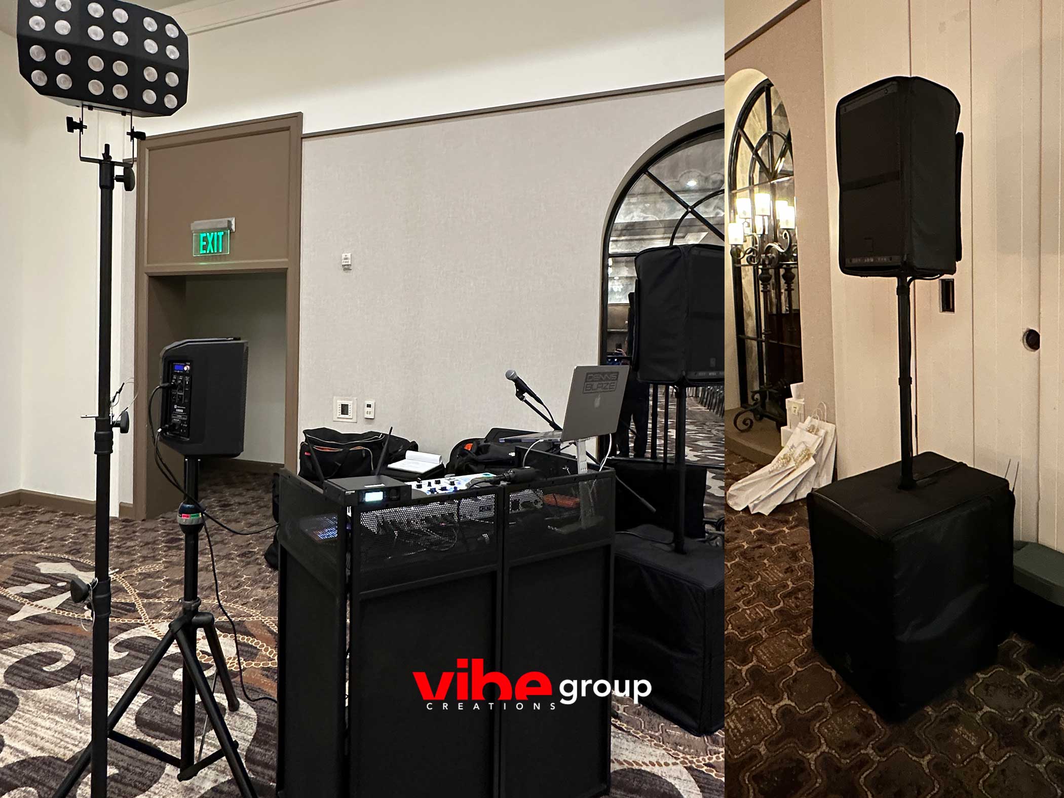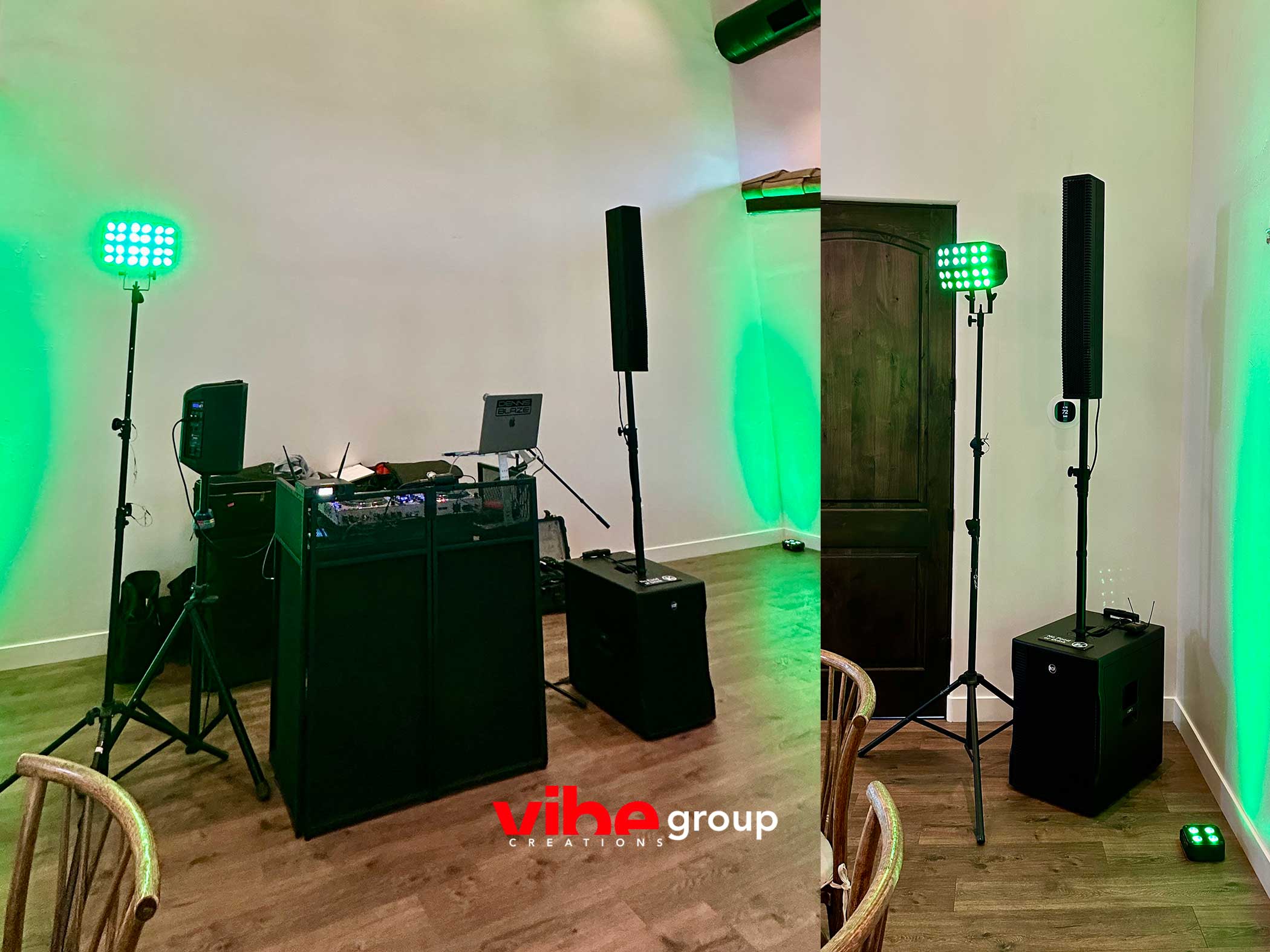 The Reception system is the main system for sound and dance floor lighting. The exact gear configurations may vary depending on the venue, location, number of guests, and logistics.