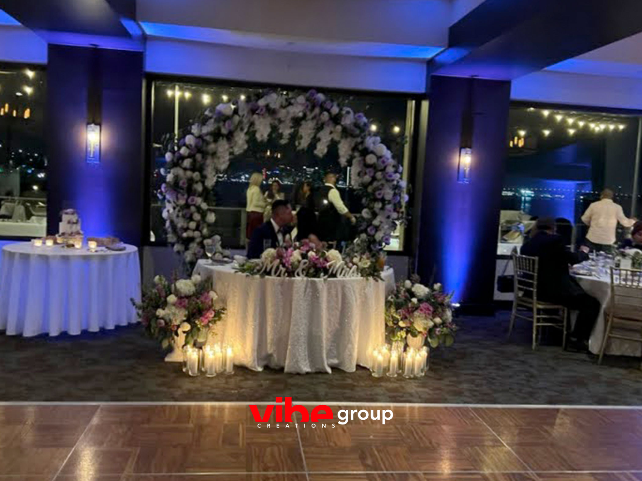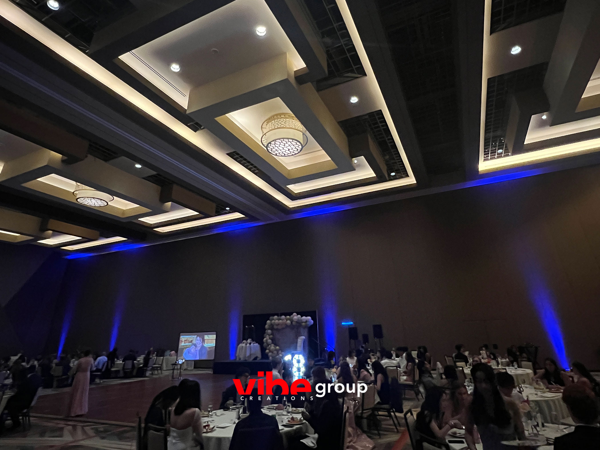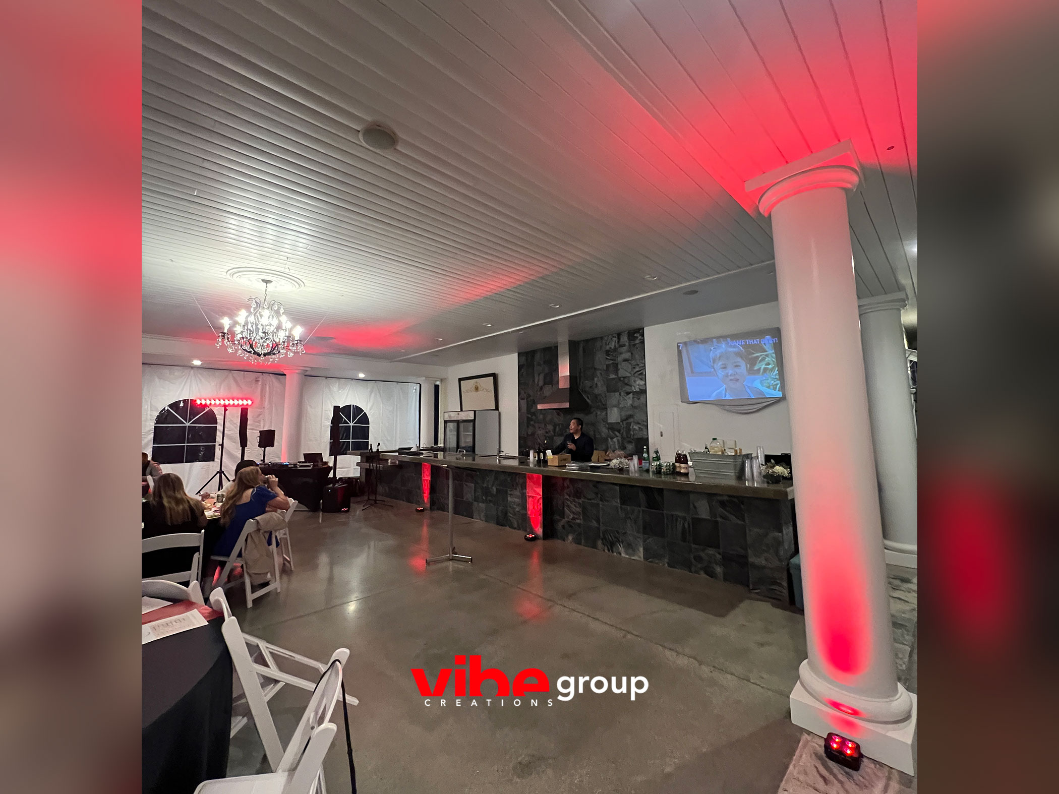 | 12 Uplighting ($400) programmable to any color to illuminate and highlight the venue's perimeters. | |||
